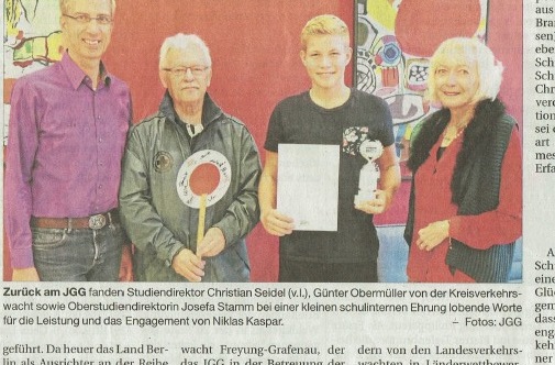 von Schülerlotsen kein schwerer Verkehrsunfall mehr mit Verletzten oder gar getöteten Schülern passiert. Wir unterstützen die Schulen mit Belohnungen der Lotsen wie Ausflügen oder Einladung zum Pizza- oder Eisessen und führen jedes Jahr bayernweit einen Wettbewerb durch, bei dem sich die Lotsen zunächst im Landkreis messen, danach die Kreisbesten im Bezirksentscheid Niederbayern antreten und hier wiederum die Sieger dann im Landesentscheid den besten Schülerlotsen Bayerns ermitteln.