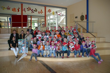 Alle Schulanfänger werden zum Schulbeginn von uns mit knallgelben, reflektierenden Warnwesten ausgestattet, damit sie auch in der Dämmerung und bei Dunkelheit gut gesehen werden.