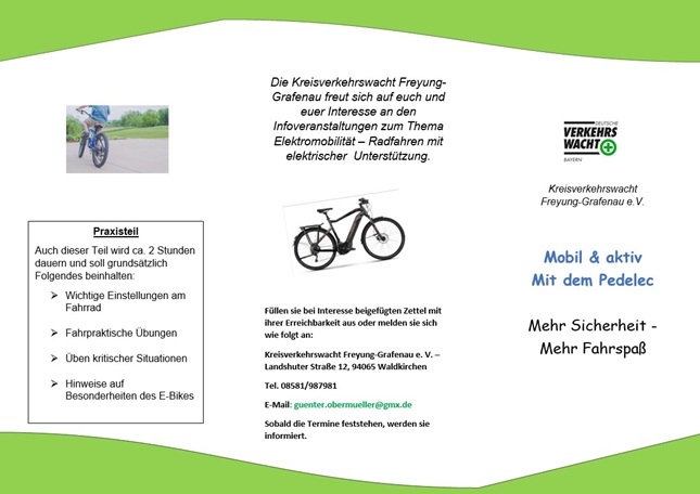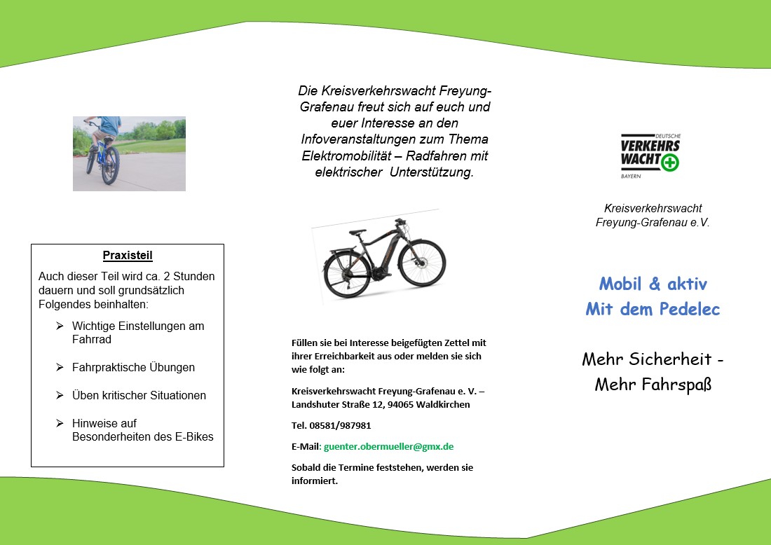 Samstag, 12. April 2026, 10.00 – ca. 14.00 Uhr, Sicher unterwegs mit dem E-Bike bzw. Pedelec am Dorfplatz in Schönbrunn a. Lusen
