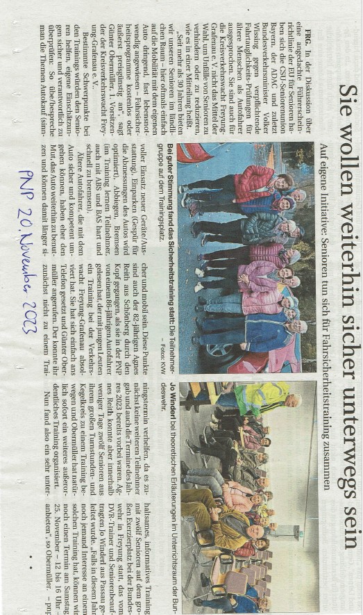 Fahrsicherheitstraining für Senioren unter Leitung von